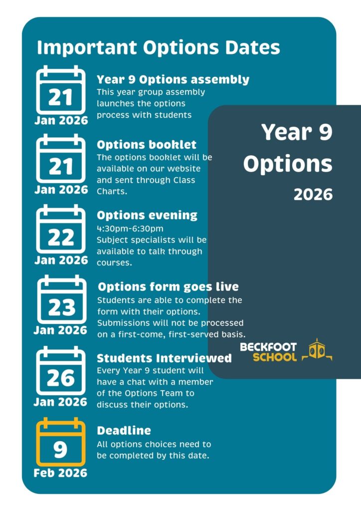 Year 9 Options 2026: Important DatesJanuary 14, 2026 Related Posts Pride like a Beckfooter – 16.01.2026January 16, 2026 Wednesday 4 February 2026 – Year 7 Parents/Carers Coffee MorningJanuary 15, 2026 The CyberFirst Girls CompetitionJanuary 15, 2026