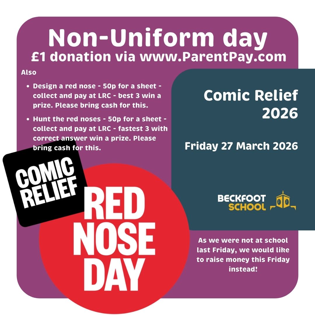 Friday 27 March 2026 – Non-Uniform Day & MoreMarch 23, 2026 Related Posts Spring Buzz – March 2026March 23, 2026 Young Musician 2026March 23, 2026 Welcoming Year 6 students to BeckfootMarch 16, 2026