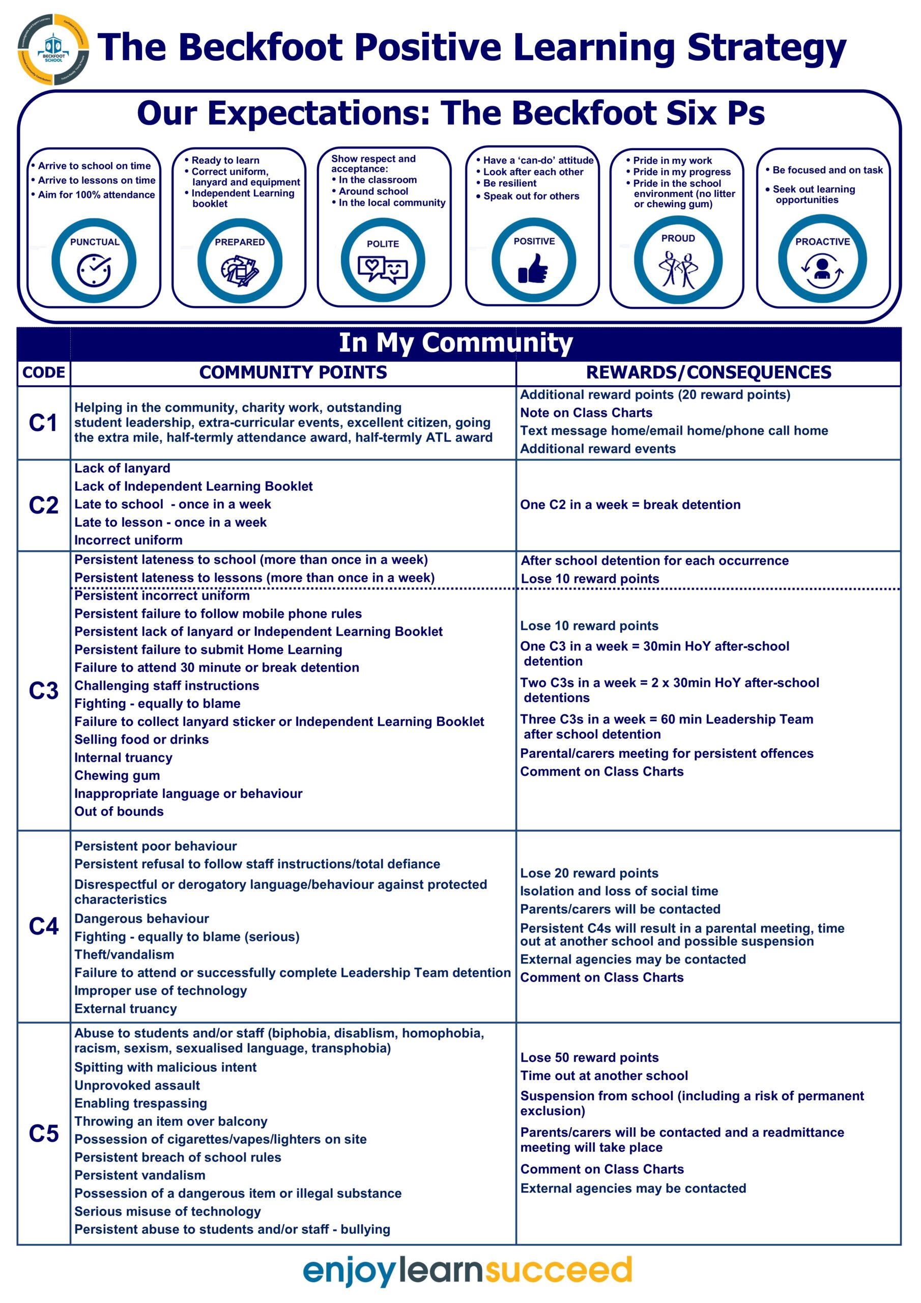 All students are expected to demonstrate the Beckfoot Six Ps.